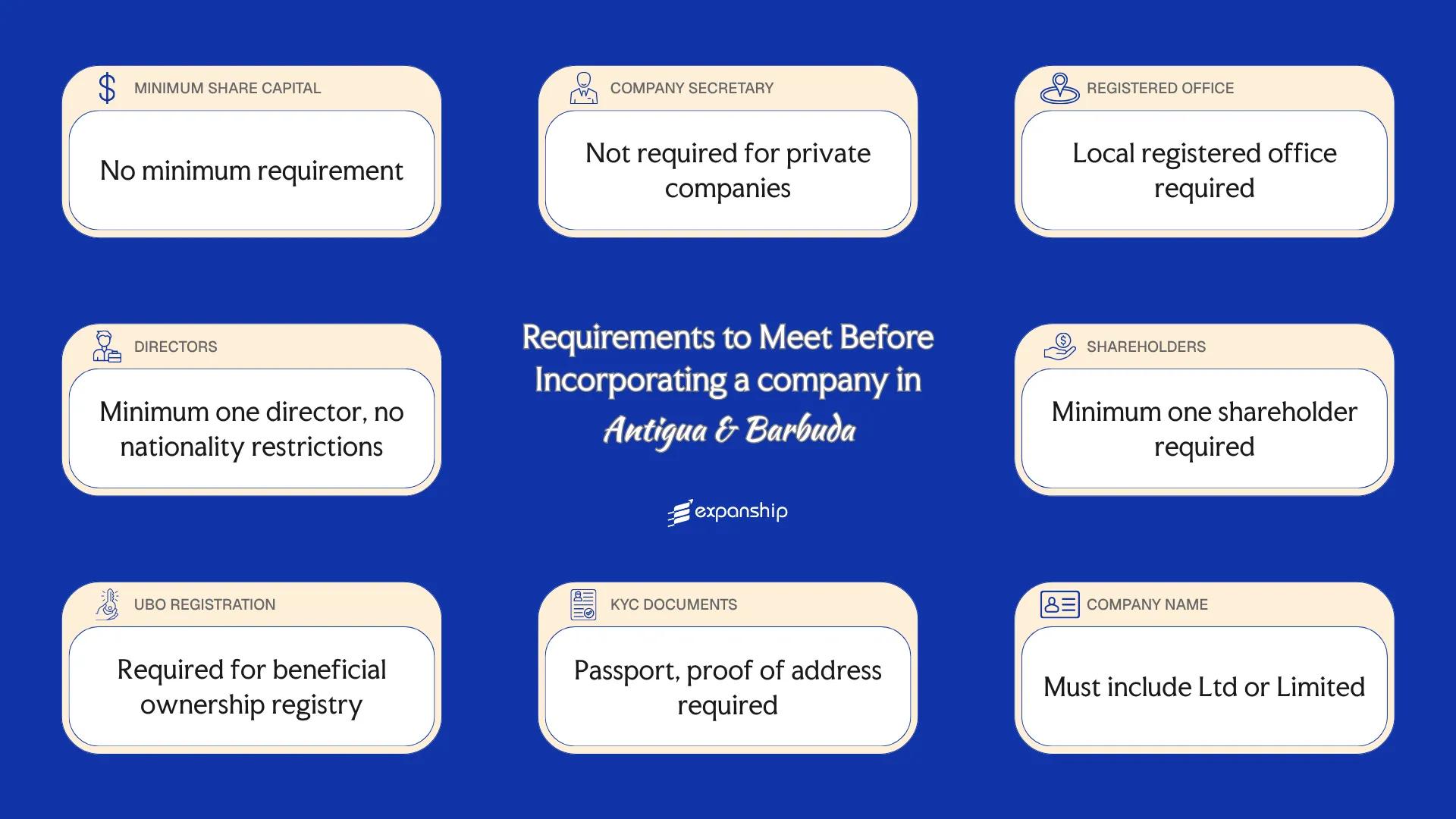 Reach out to Expanship Antigua and Barbuda to discuss your incorporation requirements.
