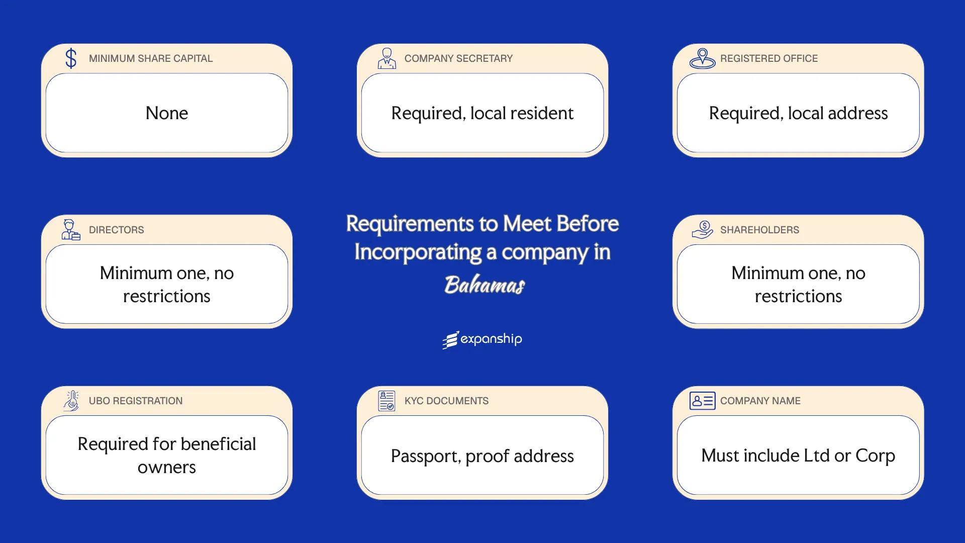 - A physical address within the Bahamas is required; a post office box alone does not satisfy this requirement.